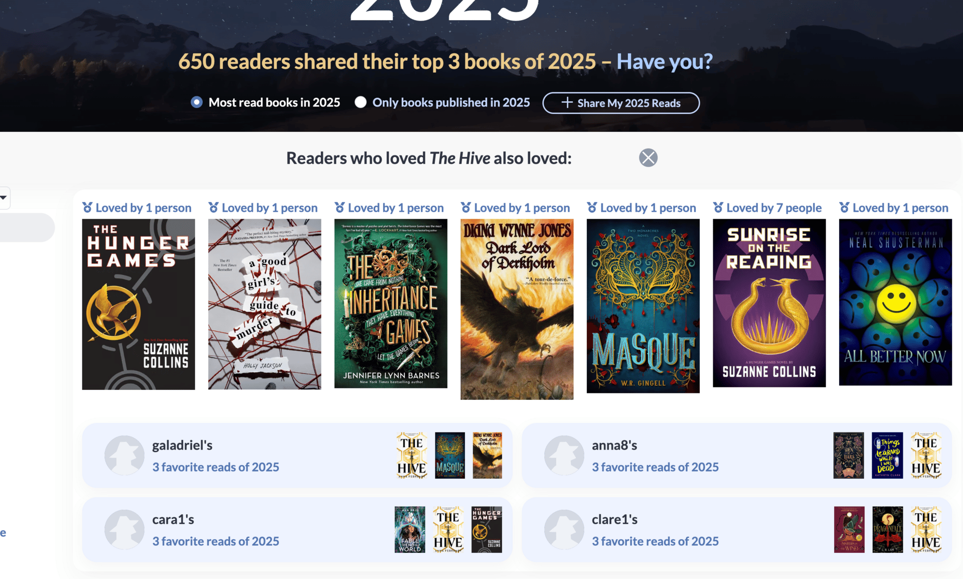Soon, we will add a new feature to our Favorite 3 Reads of 2025 that lets readers select a book they love and be matched with other readers who also loved it.