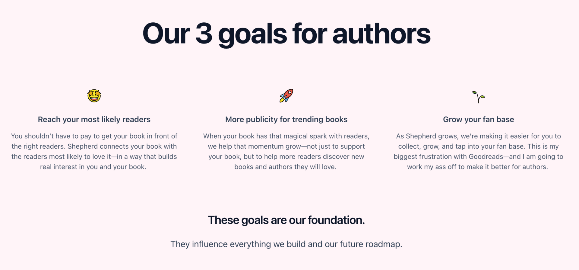 Three hurrahs for our 778 Founding Authors! 🥳 Your support keeps Shepherd independent and together we will build the book platform authors deserve. You are directly funding our mission is to figure out how to make it easier for authors to sell their books in ways that delight readers.